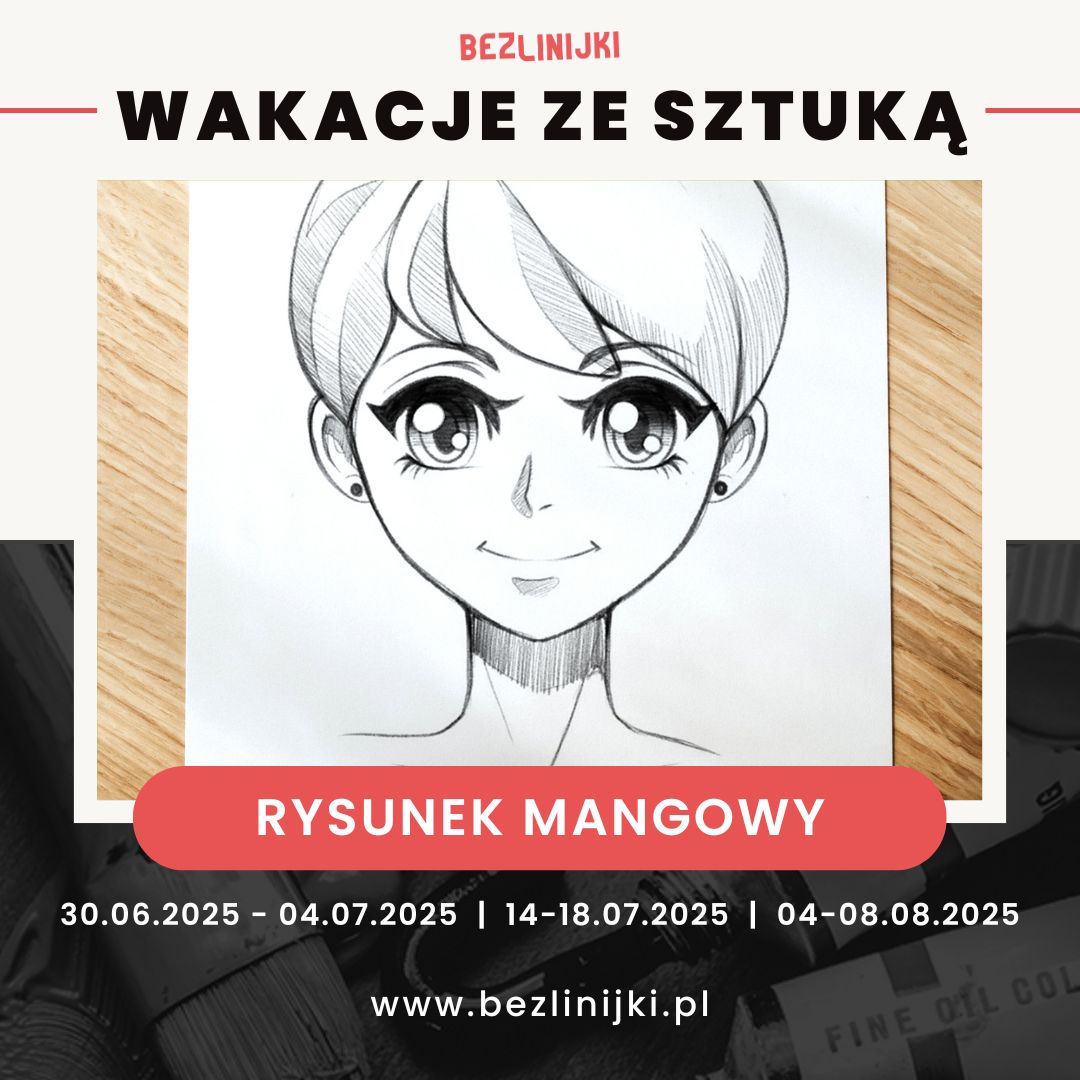- 13:00-16:00 Rysunek Mangowy – wiek: 11+ / cena: 400 zł / czas: 3 godz. x 5 spotkań / 15 godzin zajęć